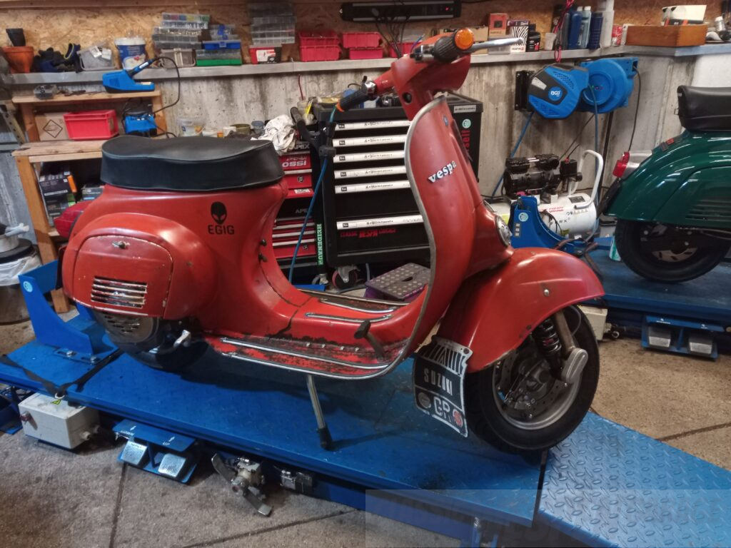 Aktuell, Dezember 2025, haben wir drei Musterroller gebaut und sind noch im Endstadium der Feintuning-Testphase und kurz davor fertig für die ersten TÜV-Durchläufe mit den Vespas zu sein. Wir haben einen Schwung griechische 50S gekauft und das sind 3 dieser Roller. Wir planen ab Anfang 2026 EGIG 170ccm Vespas bzw. Umbauten regulär bei uns anbieten zu können. Hier ein paar Impressionen unserer Musterroller: