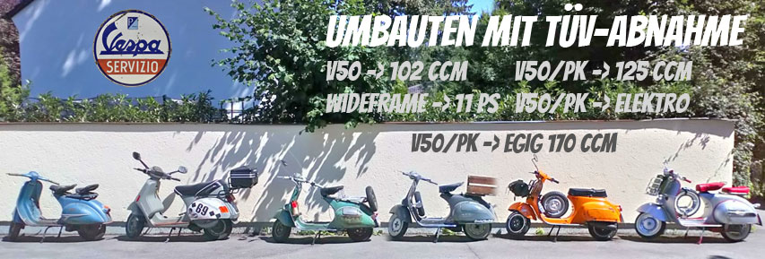 Auf dieser Seite teilen wir unsere Erfahrungen im Bezug auf Restauration und Reparatur hauptsächlich bei Vespa V50 N und PK50, aber auch immer mehr im Largeframe-Bereich.